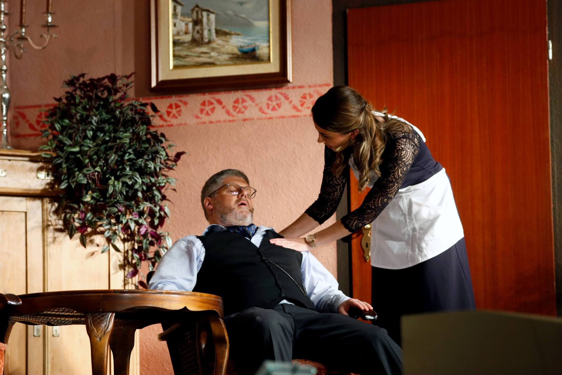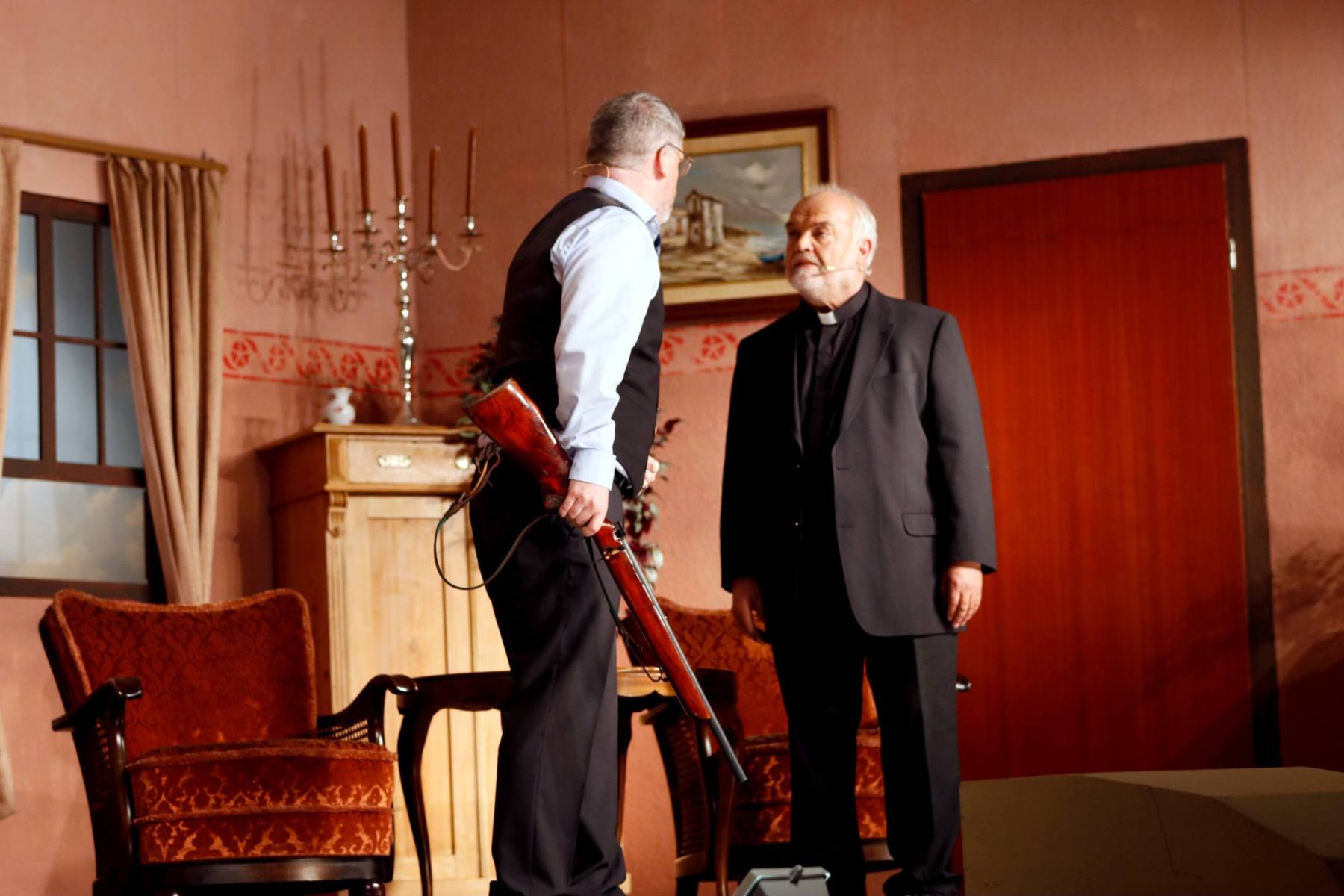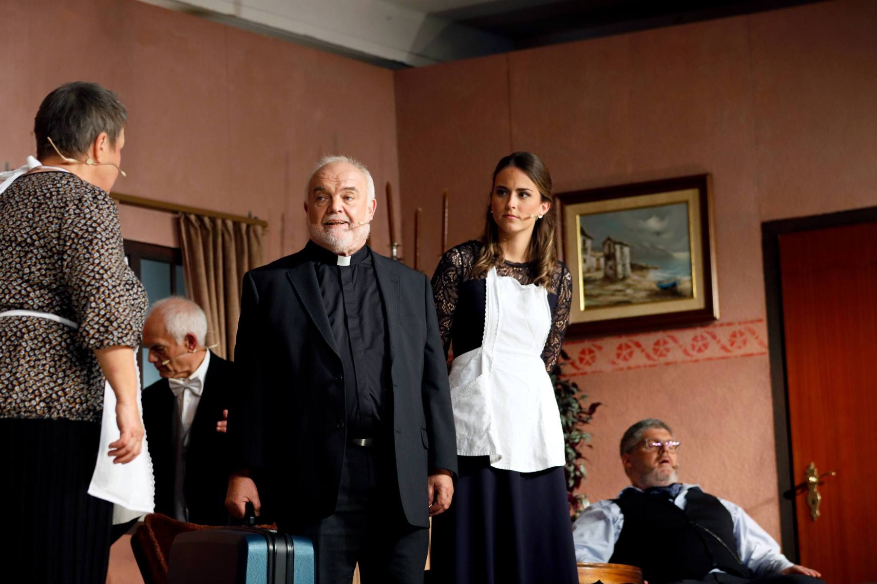 Als Serafine den Pfarrer für den Grafen hält und Poldi wiederum vorgibt, der Pastor zu sein, ist das Durcheinander komplett.