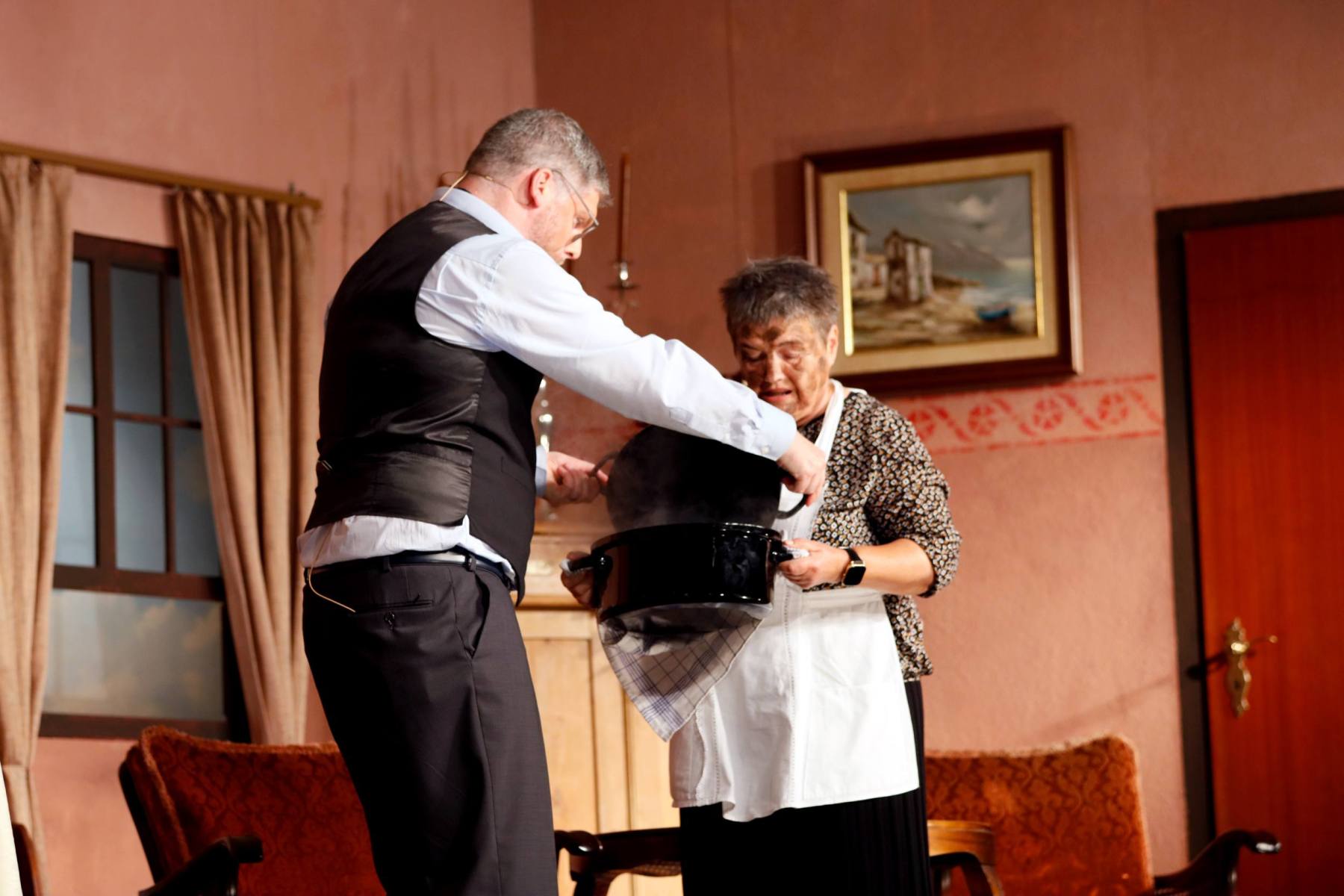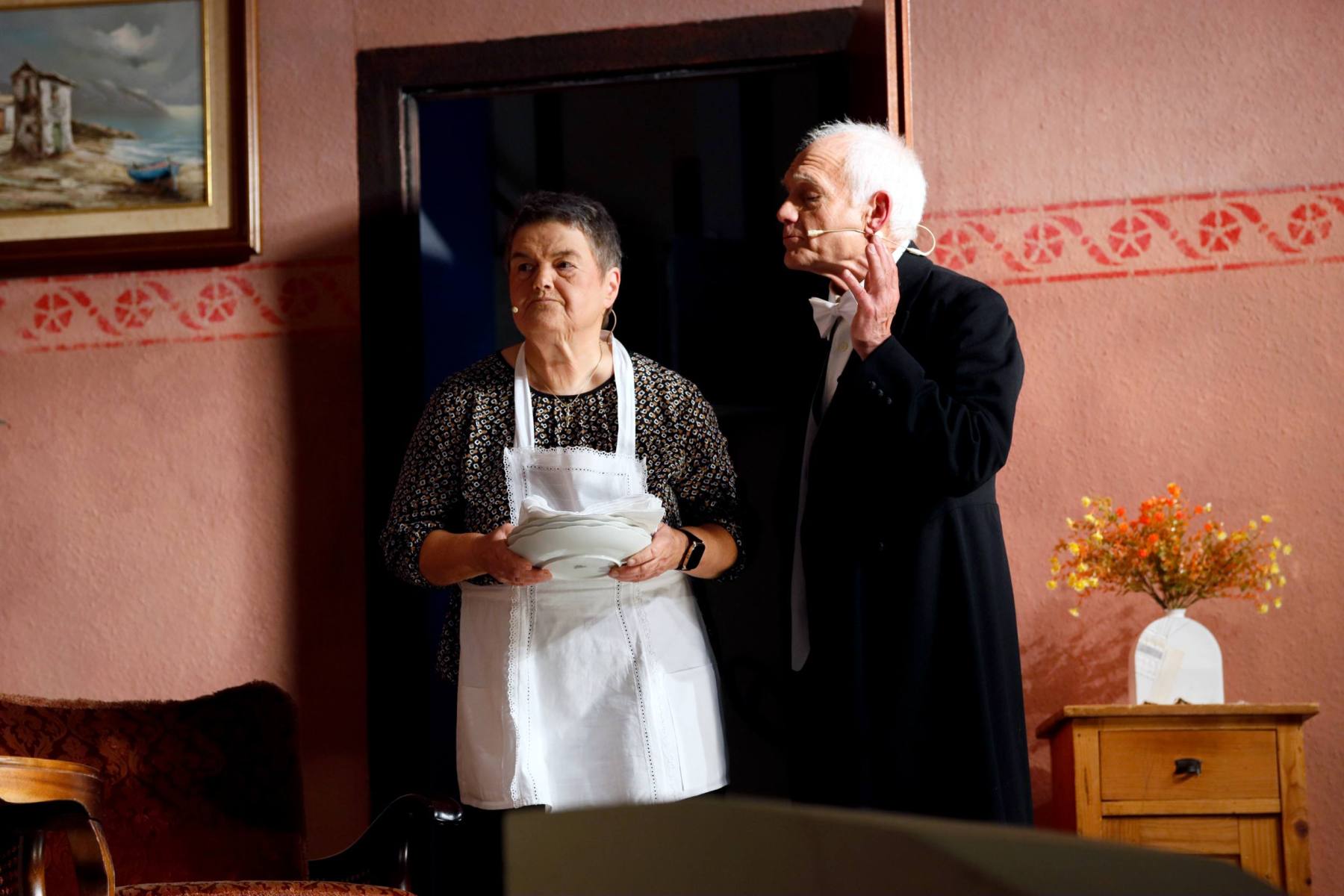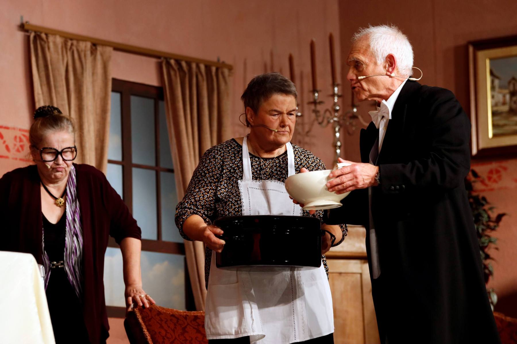 Als Serafine den Pfarrer für den Grafen hält und Poldi wiederum vorgibt, der Pastor zu sein, ist das Durcheinander komplett.