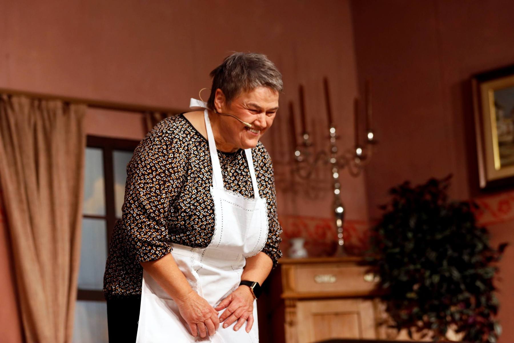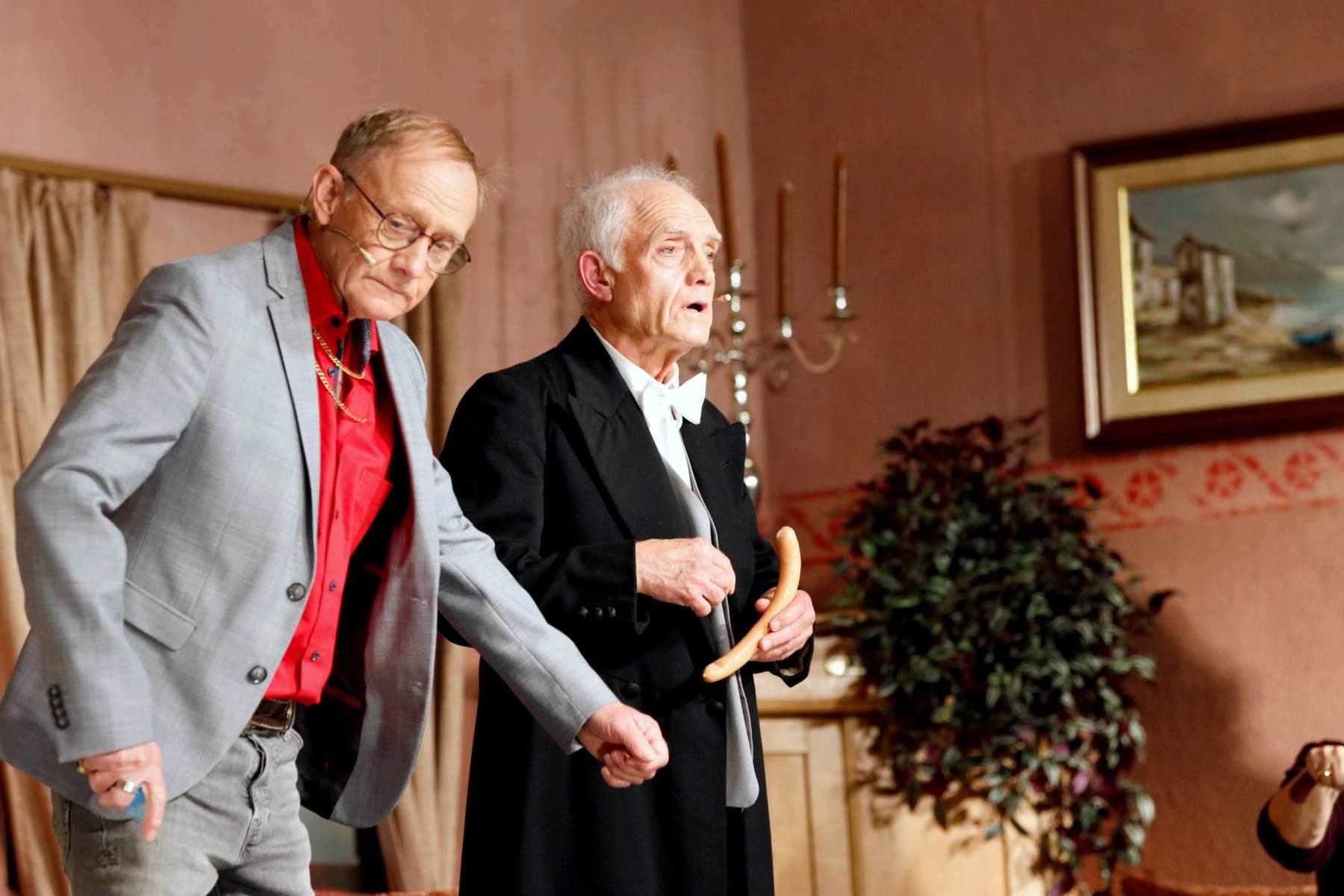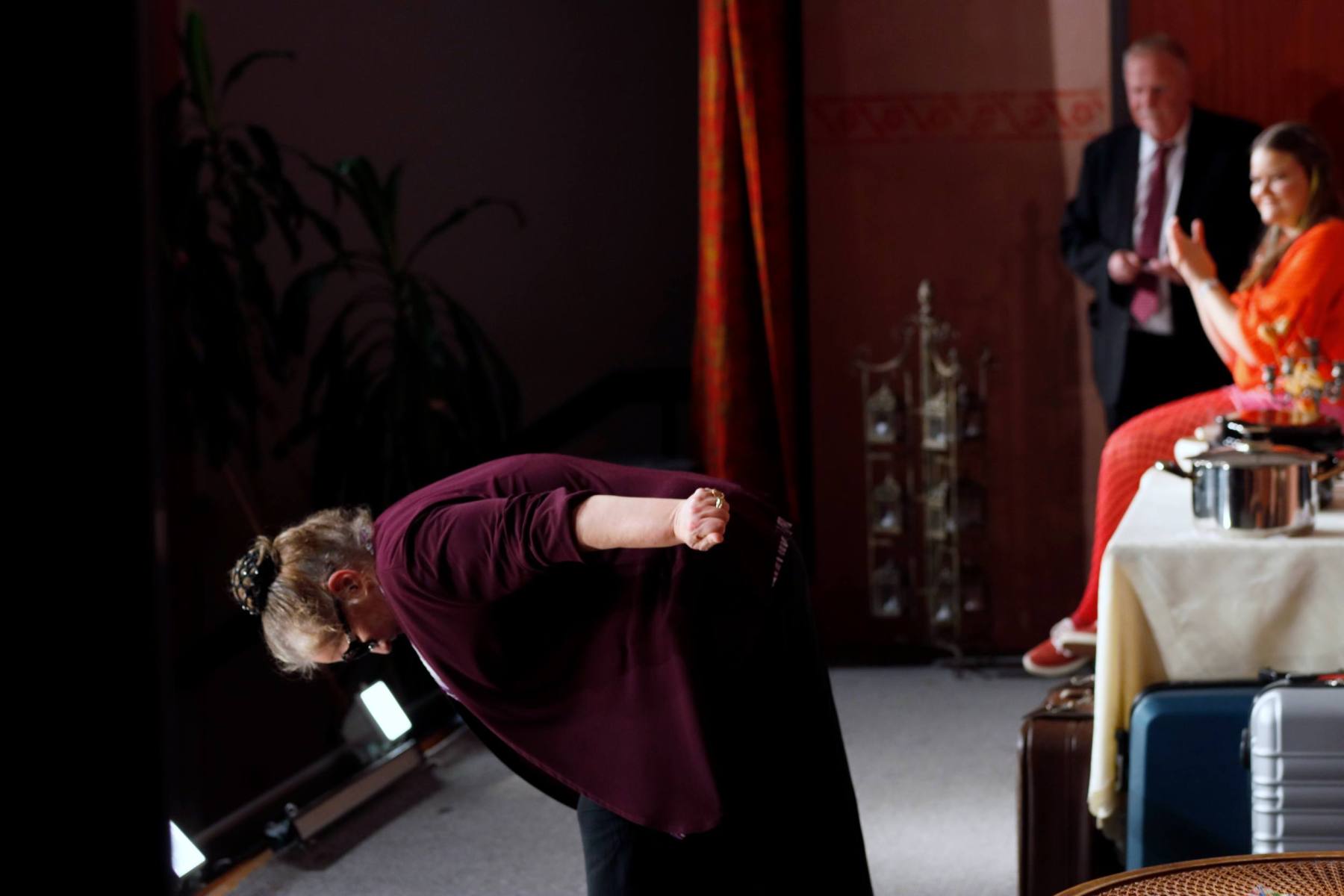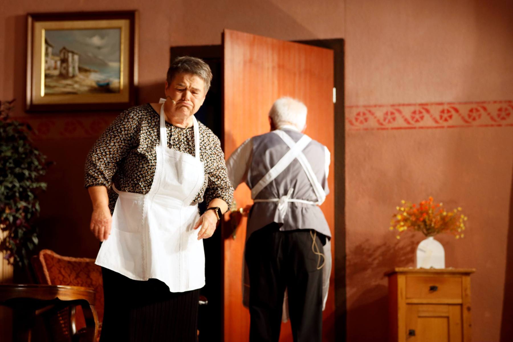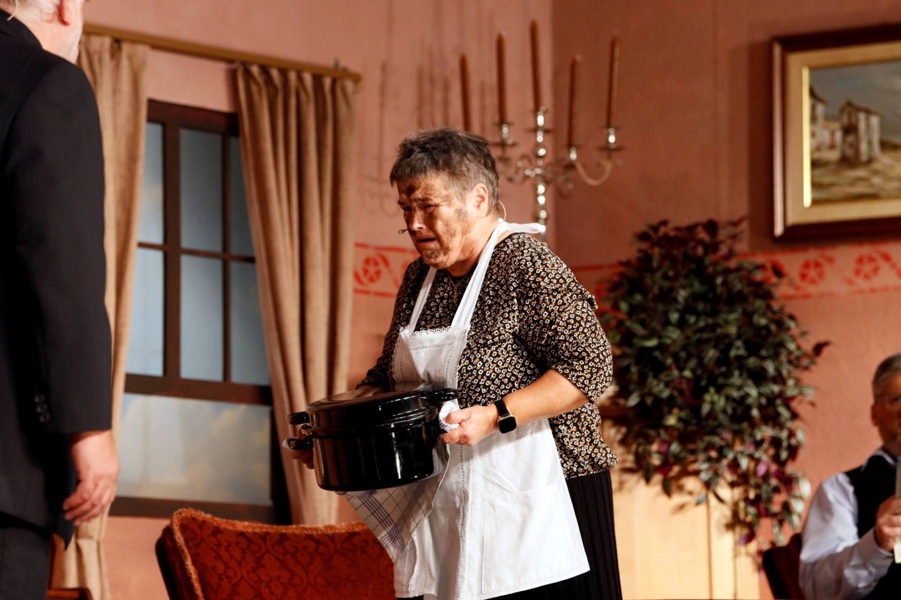 Der Vorhang öffnete zu den Klängen von Karel Gotts „Es wird schon weitergehen“. Dieses Lied passt auch sehr gut in die Vorbereitung des Stückes. Unser Spielleiter stand vor der schwierigen Aufgabe ein passendes Werk für die in diesem Jahr dezimierte Akteuren-Crew zu finden. Keine Leseprobe, die ihm gefiel, war anständig zu besetzen. Vor etwa drei Monaten dann der Wandel, Norri hat mit „Currywurst und Kaviar“ nicht nur eine tolle Komödie gefunden, sondern hatte auch eine passende Mannschaft parat. Mit Mira Schäfer, Anika Werkle, Britta Brill und Max Brill haben wir mit gleich vier Debütanten auf unserer großen Bühne einen wahren Volltreffer gelandet! Alle haben sich hervorragend ins Team integriert, und die Abende durch starkes Spiel bereichert. Dann ging es richtig Flott: