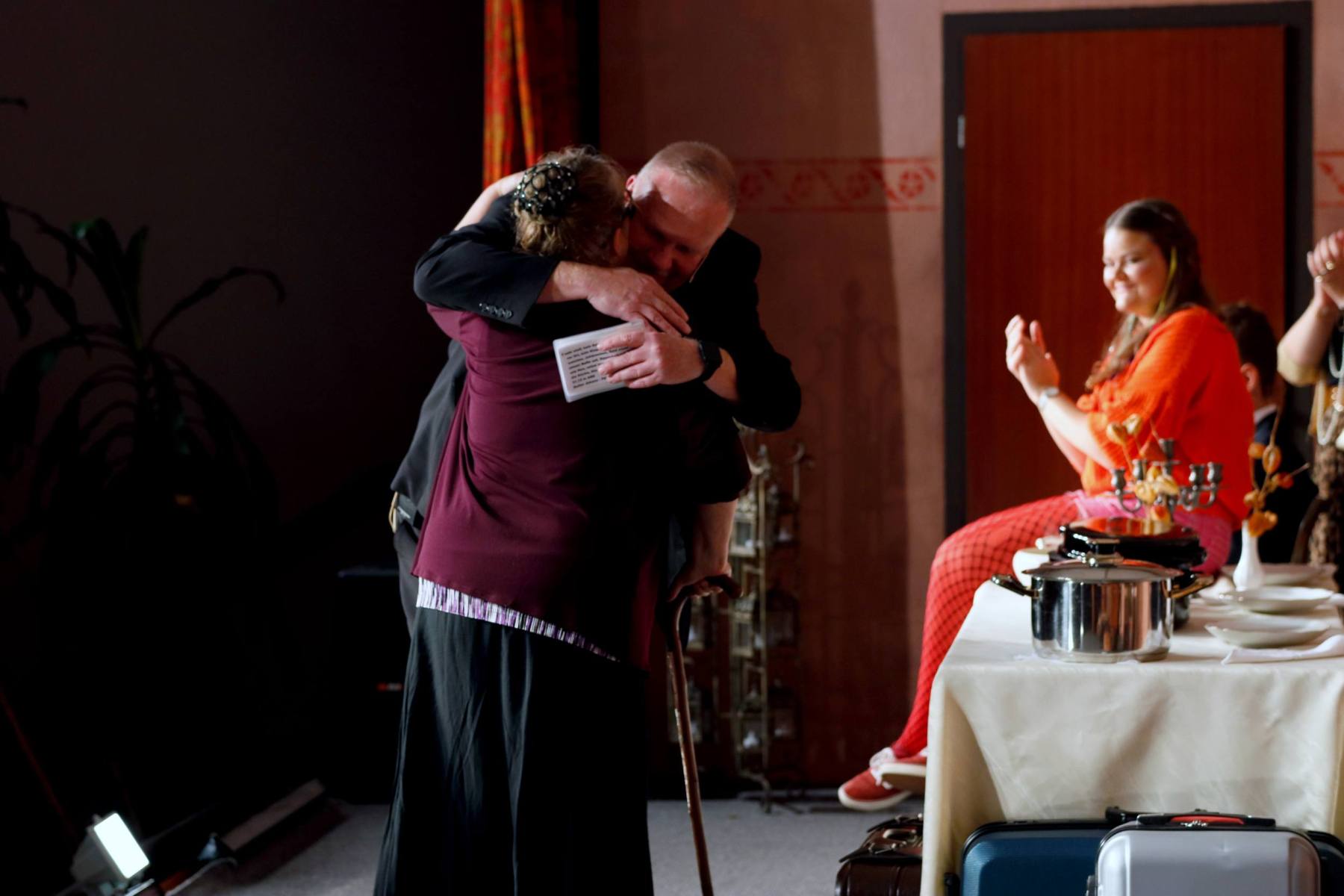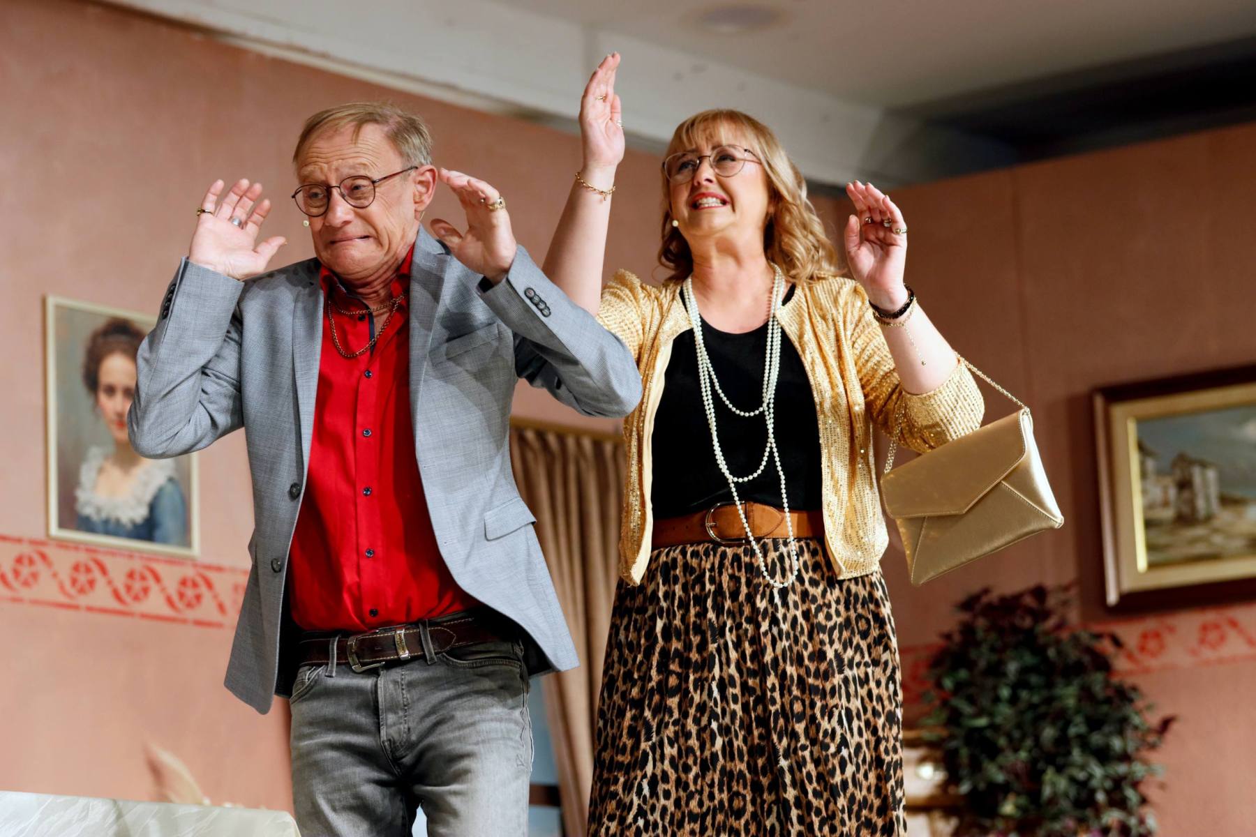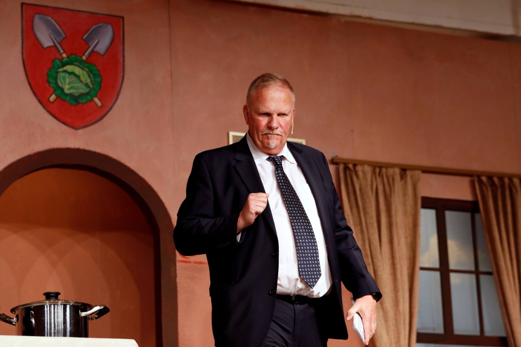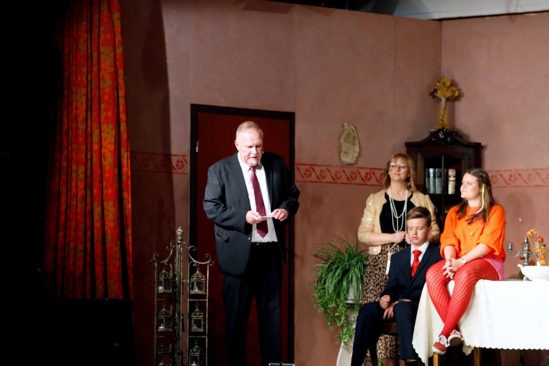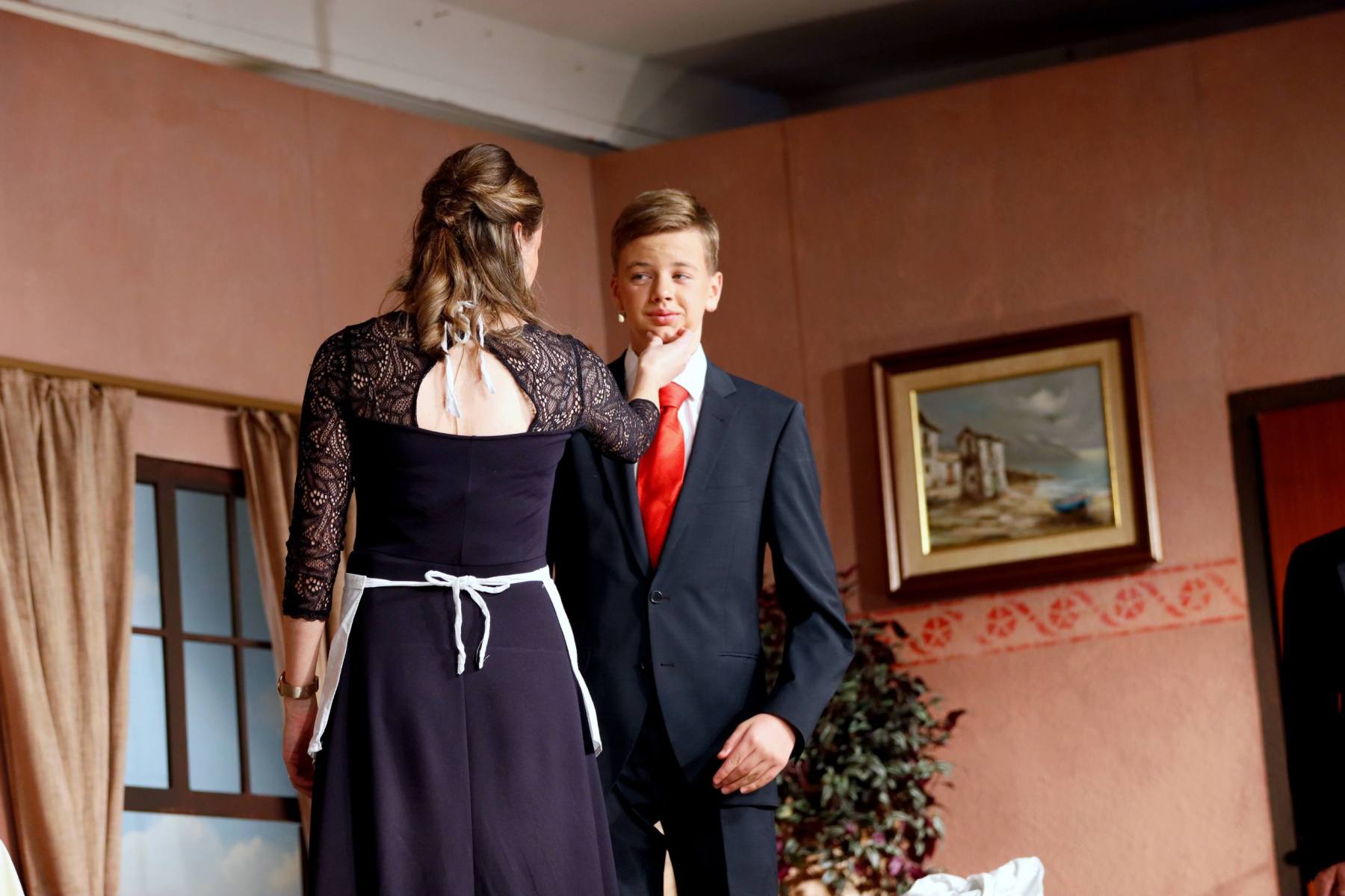 Der Vorhang öffnete zu den Klängen von Karel Gotts „Es wird schon weitergehen“. Dieses Lied passt auch sehr gut in die Vorbereitung des Stückes. Unser Spielleiter stand vor der schwierigen Aufgabe ein passendes Werk für die in diesem Jahr dezimierte Akteuren-Crew zu finden. Keine Leseprobe, die ihm gefiel, war anständig zu besetzen. Vor etwa drei Monaten dann der Wandel, Norri hat mit „Currywurst und Kaviar“ nicht nur eine tolle Komödie gefunden, sondern hatte auch eine passende Mannschaft parat. Mit Mira Schäfer, Anika Werkle, Britta Brill und Max Brill haben wir mit gleich vier Debütanten auf unserer großen Bühne einen wahren Volltreffer gelandet! Alle haben sich hervorragend ins Team integriert, und die Abende durch starkes Spiel bereichert. Dann ging es richtig Flott: