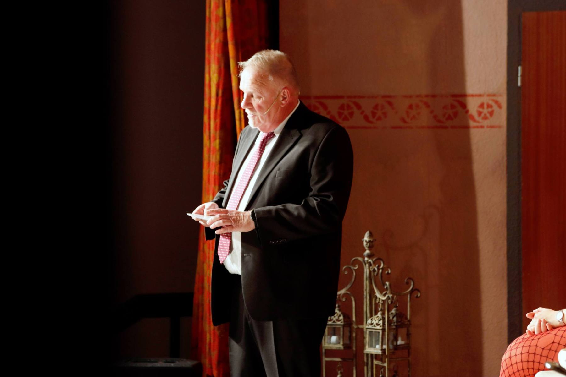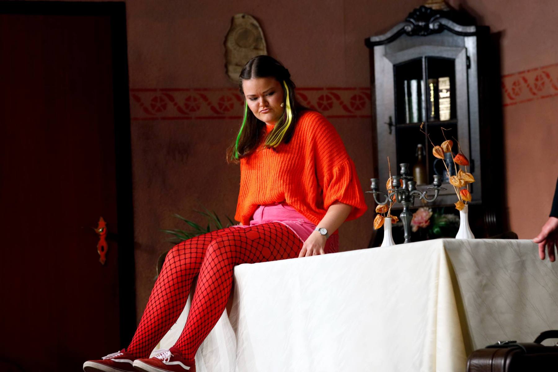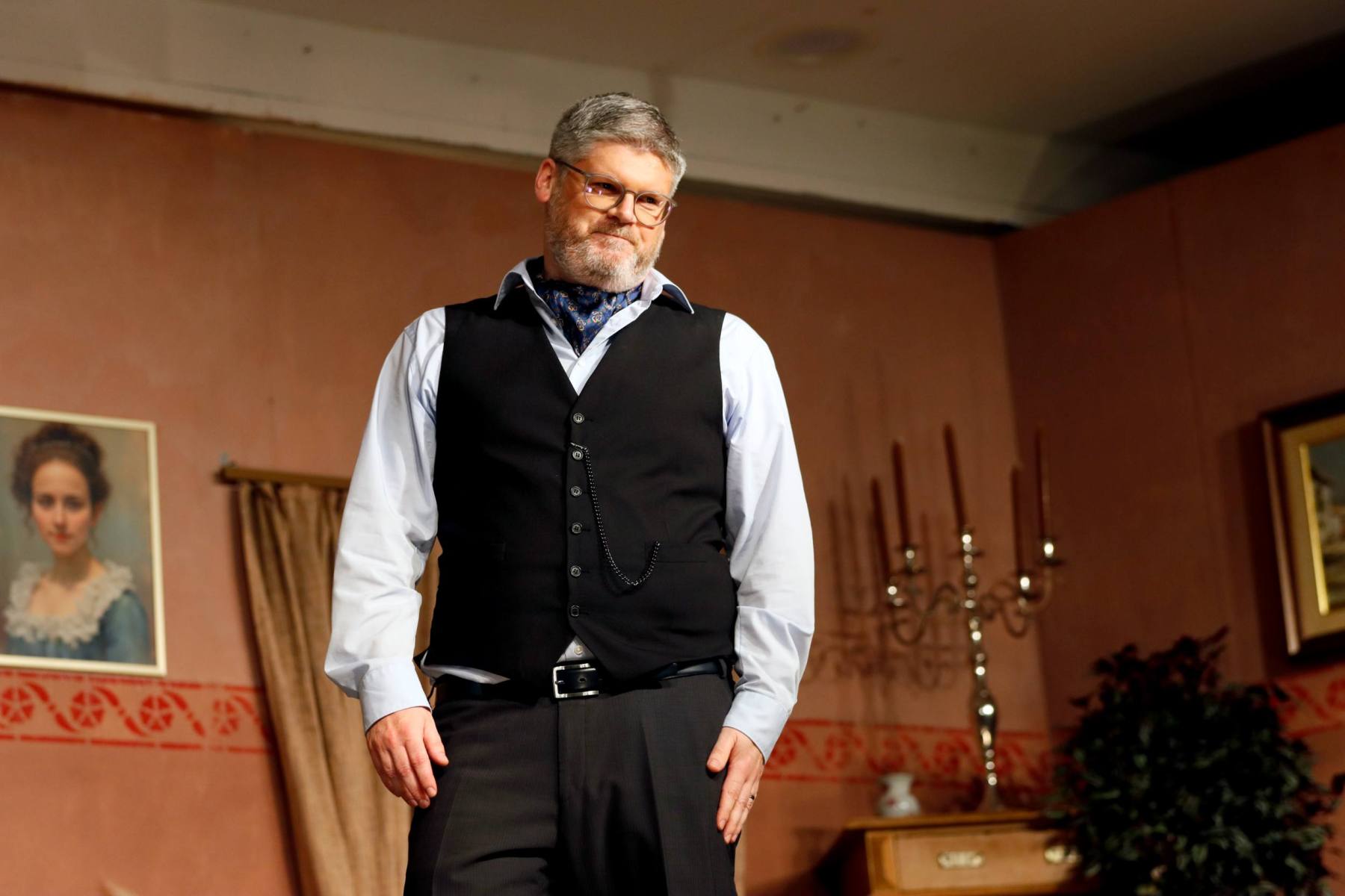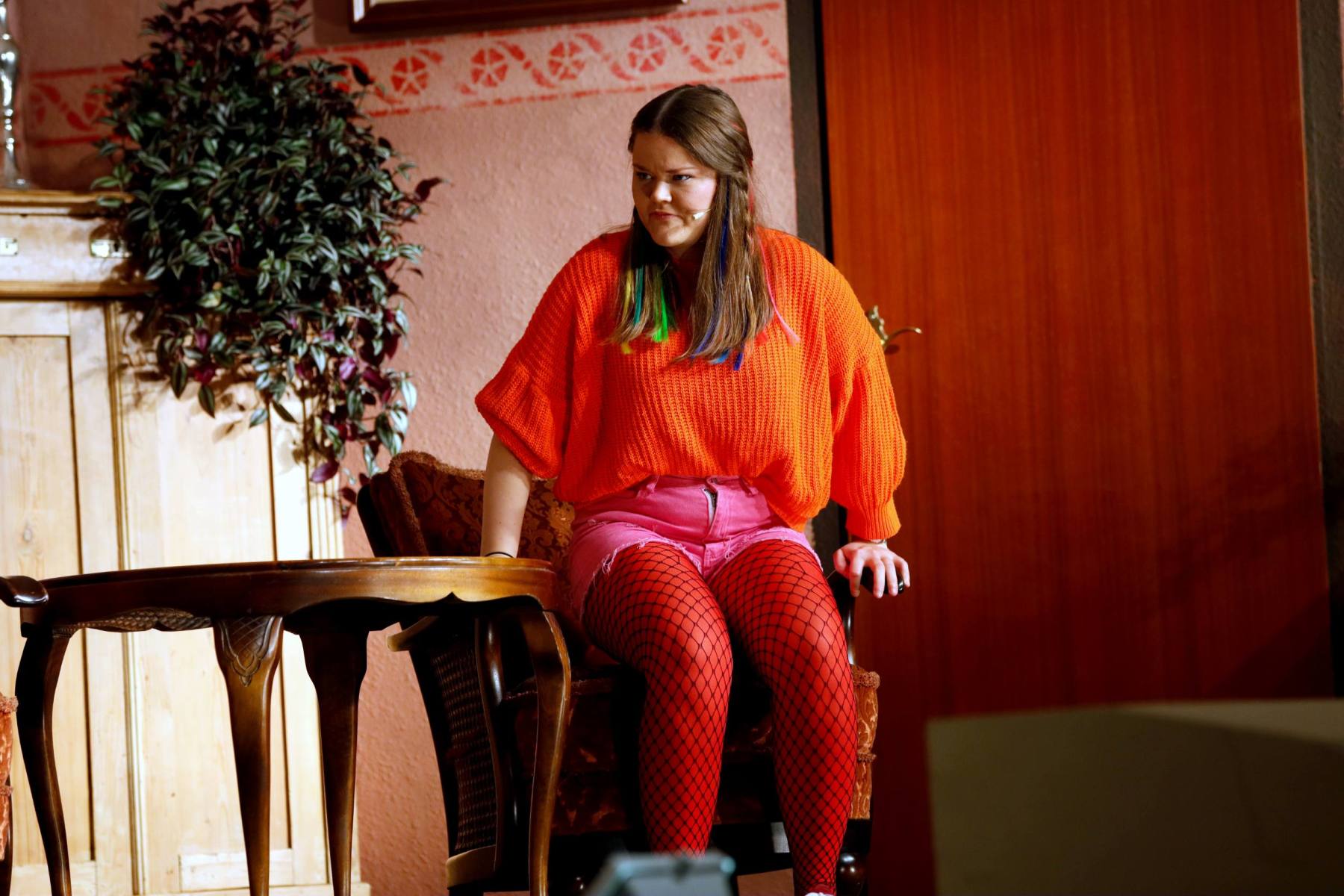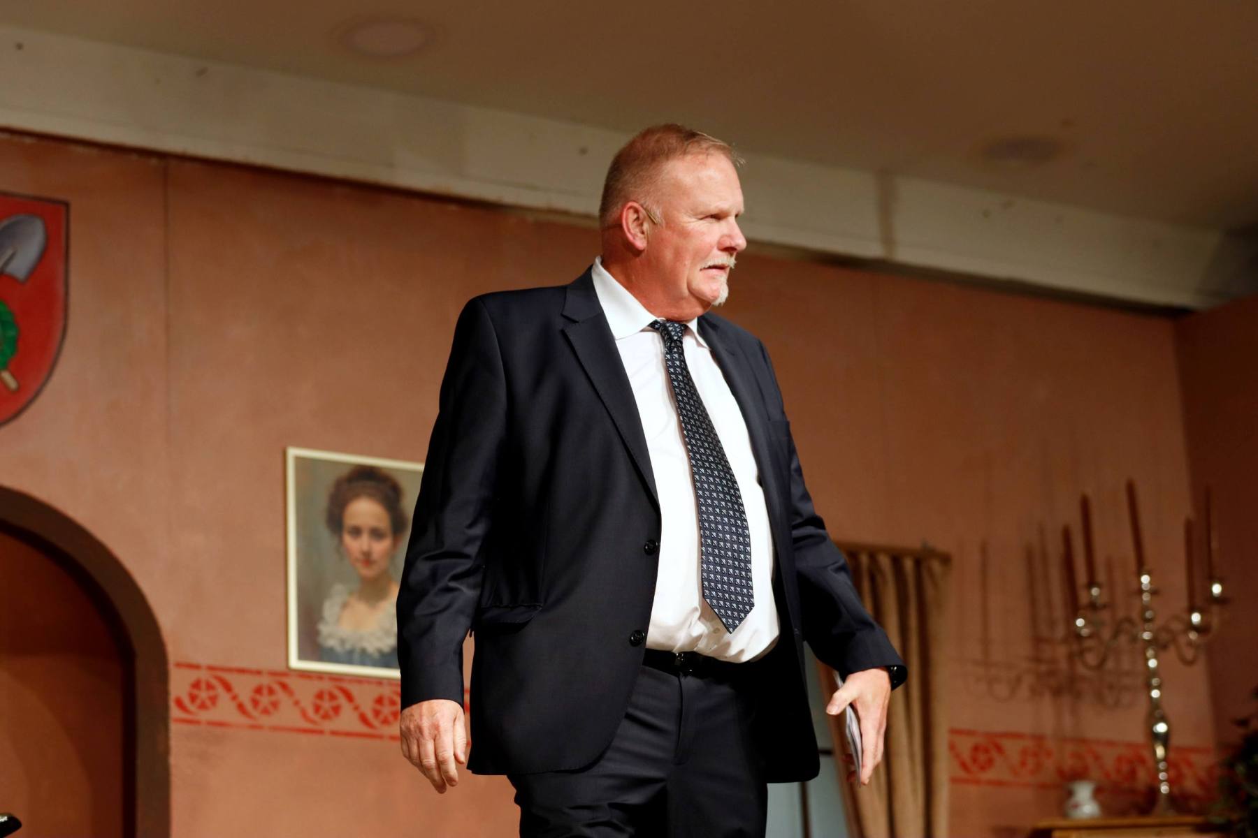Der Vorhang öffnete zu den Klängen von Karel Gotts „Es wird schon weitergehen“. Dieses Lied passt auch sehr gut in die Vorbereitung des Stückes. Unser Spielleiter stand vor der schwierigen Aufgabe ein passendes Werk für die in diesem Jahr dezimierte Akteuren-Crew zu finden. Keine Leseprobe, die ihm gefiel, war anständig zu besetzen. Vor etwa drei Monaten dann der Wandel, Norri hat mit „Currywurst und Kaviar“ nicht nur eine tolle Komödie gefunden, sondern hatte auch eine passende Mannschaft parat. Mit Mira Schäfer, Anika Werkle, Britta Brill und Max Brill haben wir mit gleich vier Debütanten auf unserer großen Bühne einen wahren Volltreffer gelandet! Alle haben sich hervorragend ins Team integriert, und die Abende durch starkes Spiel bereichert. Dann ging es richtig Flott: