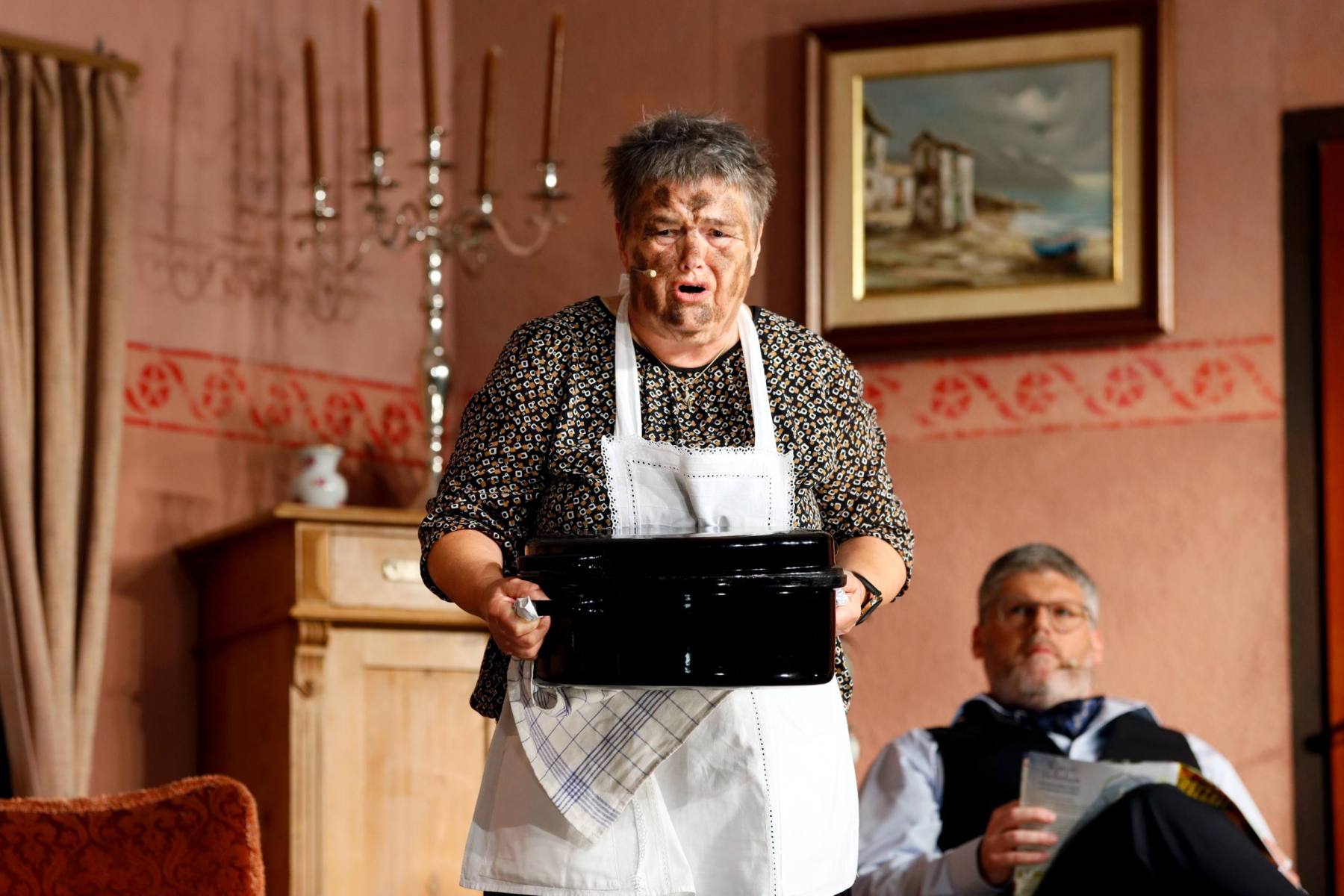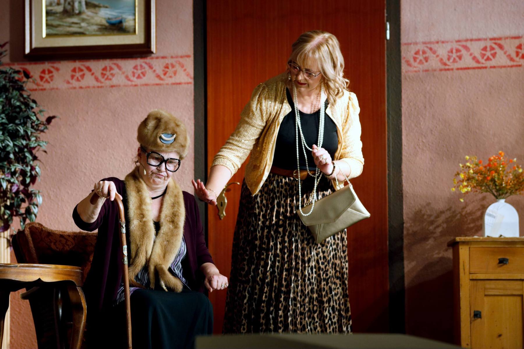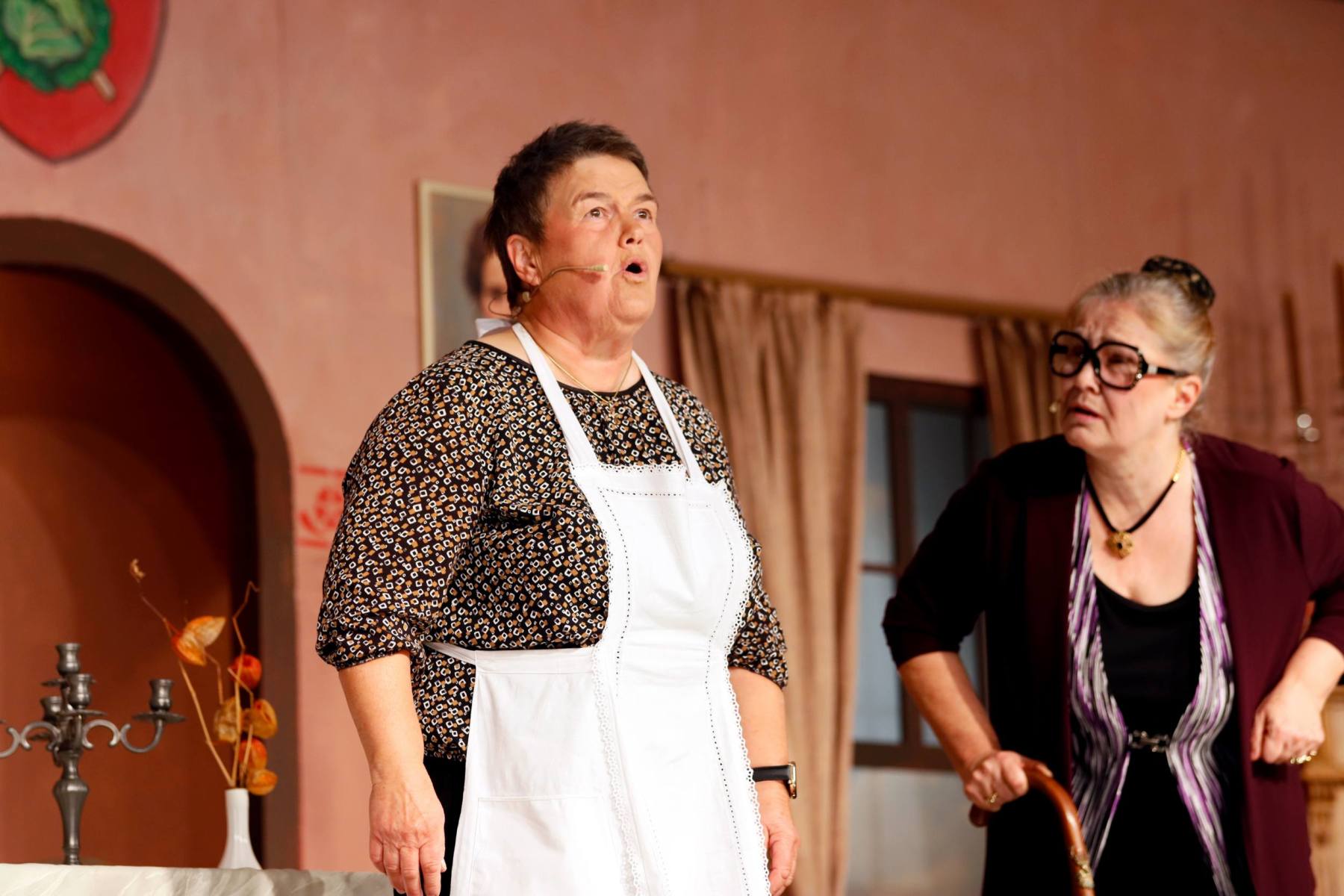 Dann erscheinen Moritz „Hans Wurschd von Alsweiler“ Knackfrisch, seine Mutter Serafine, die Gattin Hulda und Tochter Jo im Schloss. Serafine ist schwerhörig, herrisch und sorgt mit ihrer direkten Art sofort für einiges an Chaos.