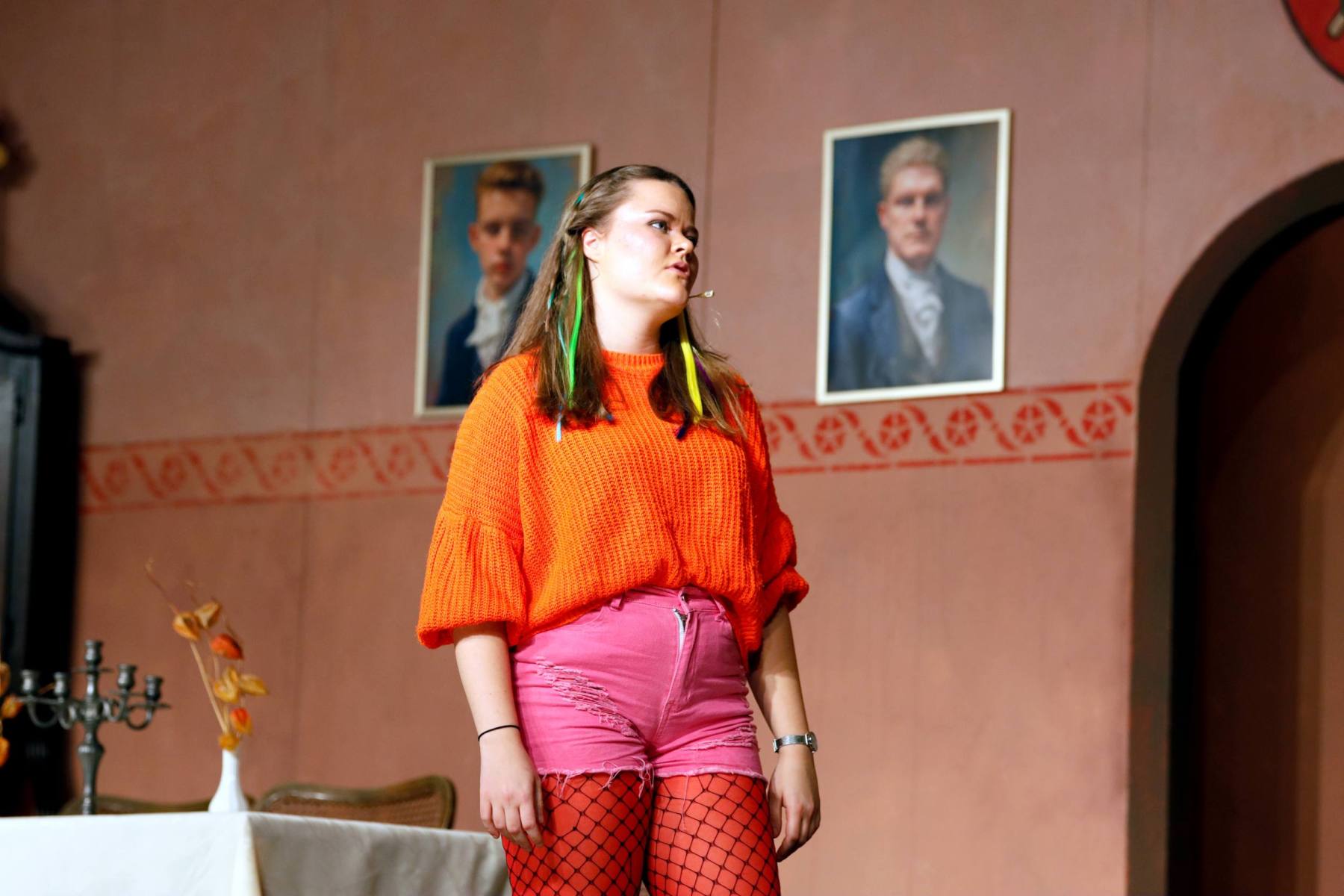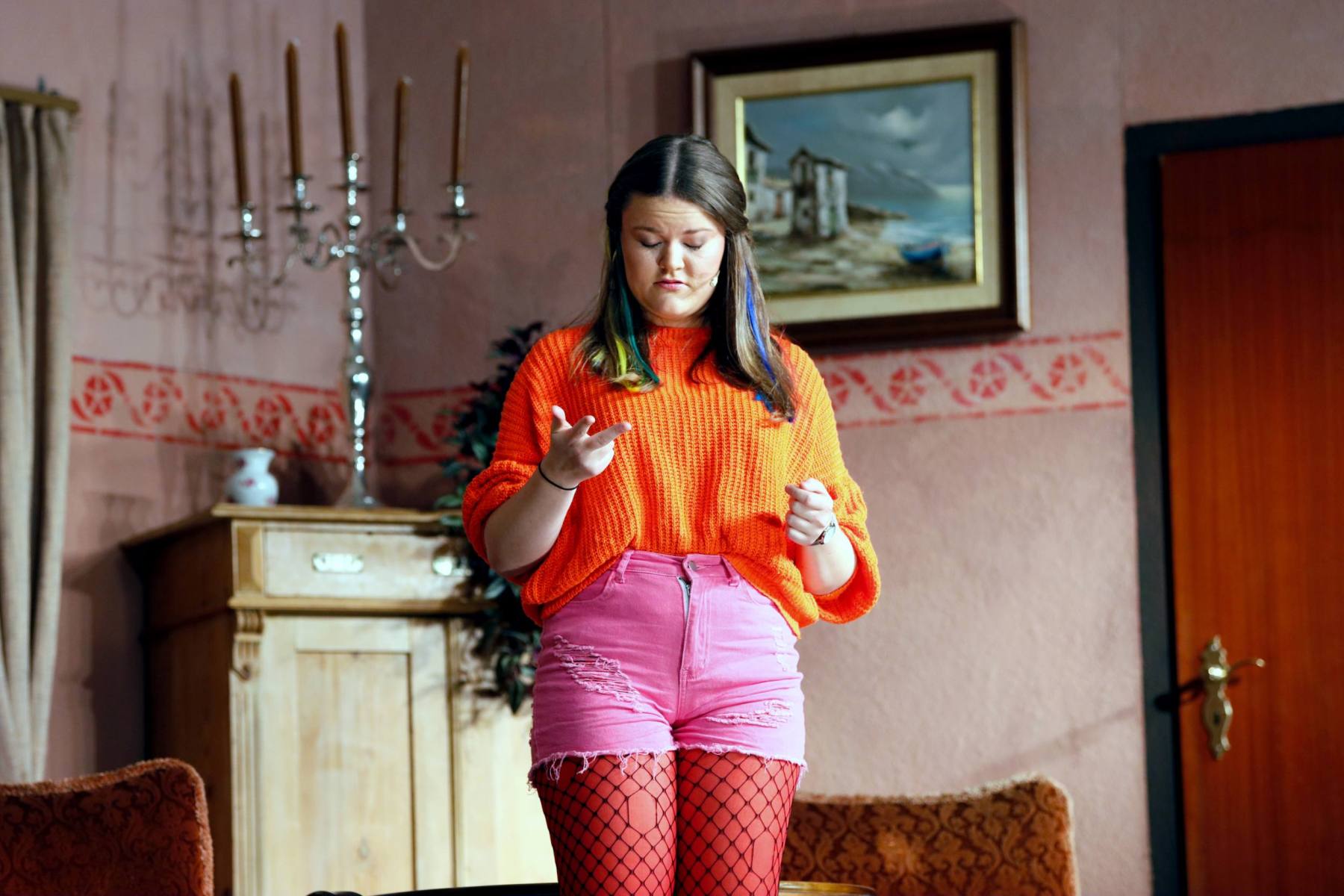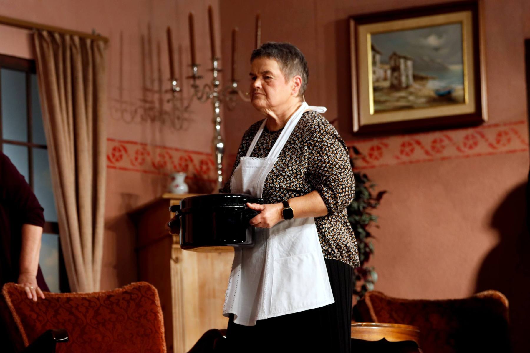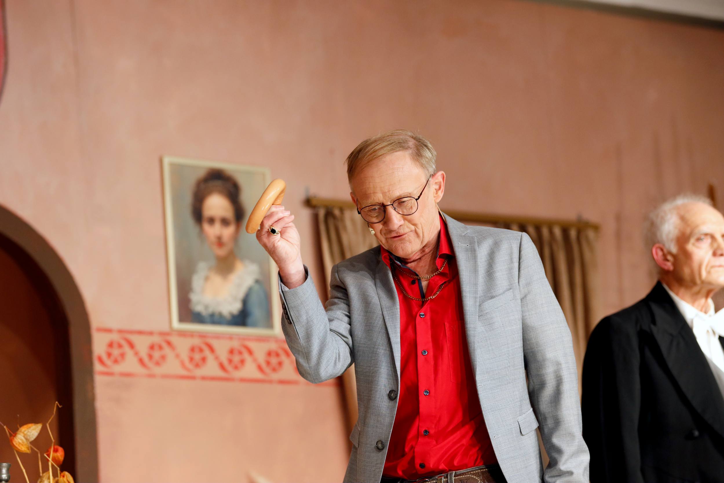 Dann erscheinen Moritz „Hans Wurschd von Alsweiler“ Knackfrisch, seine Mutter Serafine, die Gattin Hulda und Tochter Jo im Schloss. Serafine ist schwerhörig, herrisch und sorgt mit ihrer direkten Art sofort für einiges an Chaos.