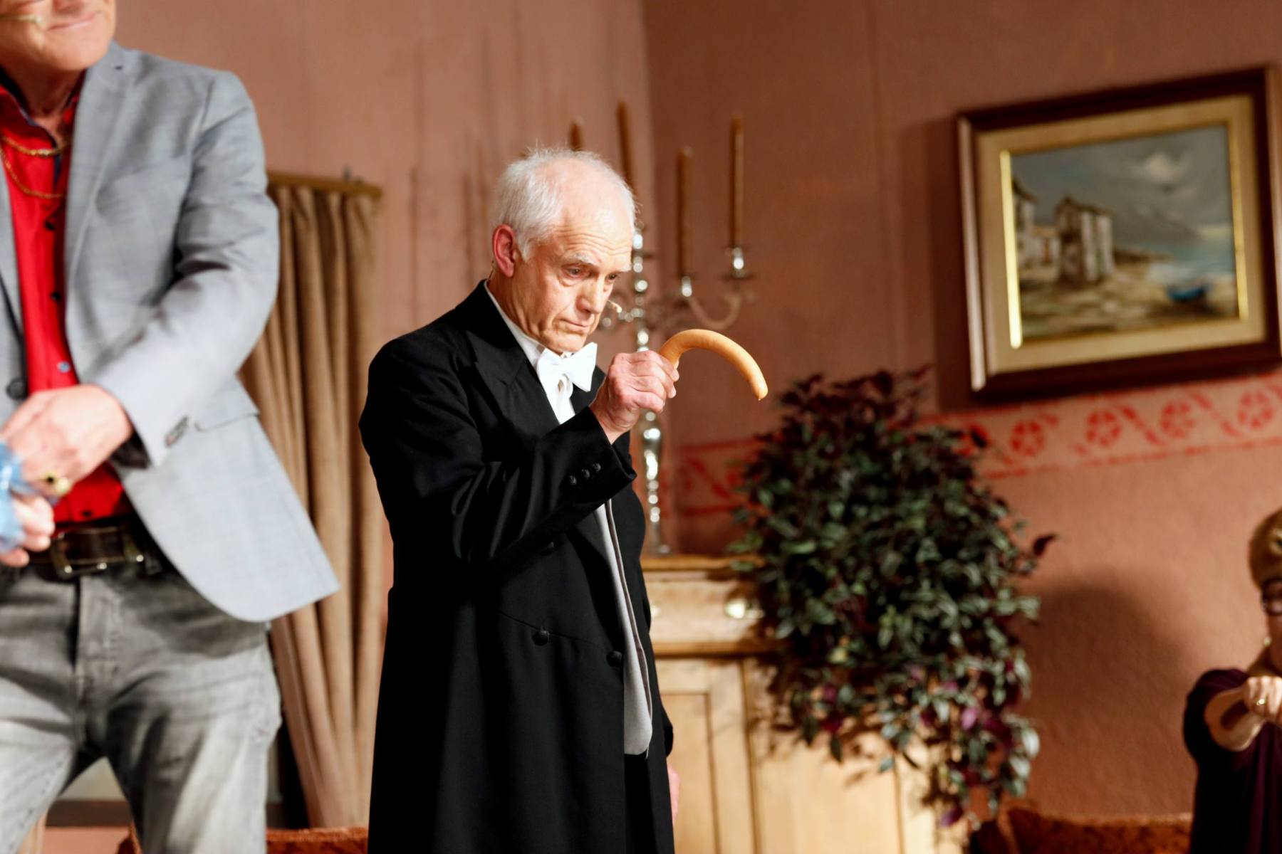 Auch Butler Johann bekommt Besuch: Sein Neffe Mathias, ein junger Banker, der zufällig dem Grafen Poldi zum Verwechseln ähnlichsieht.