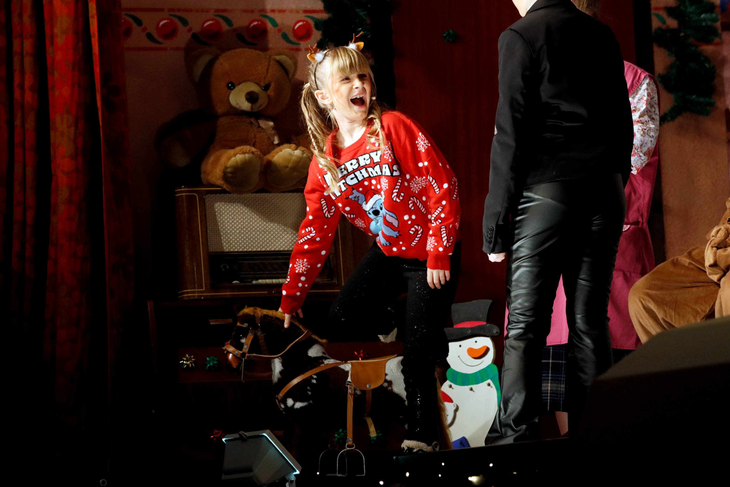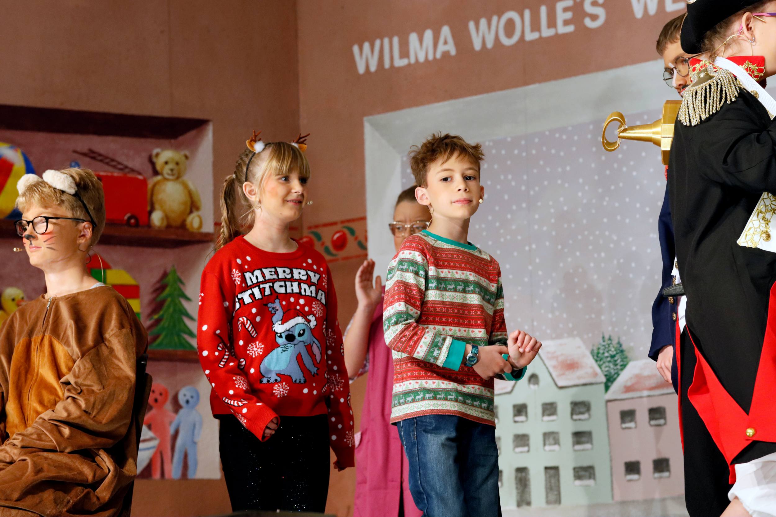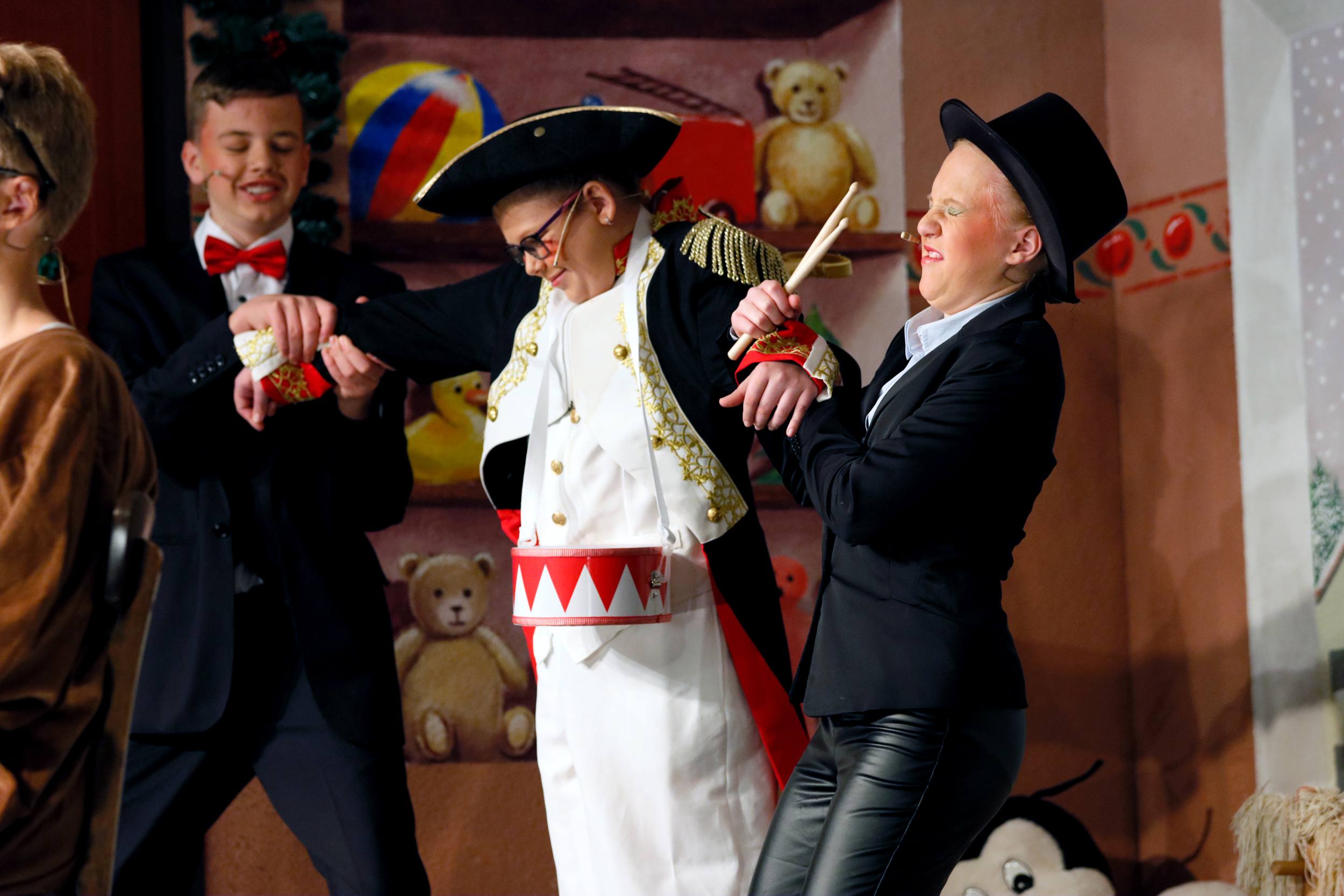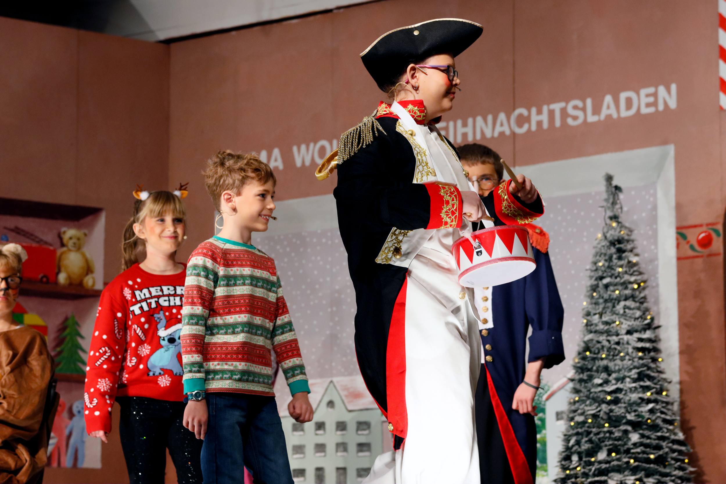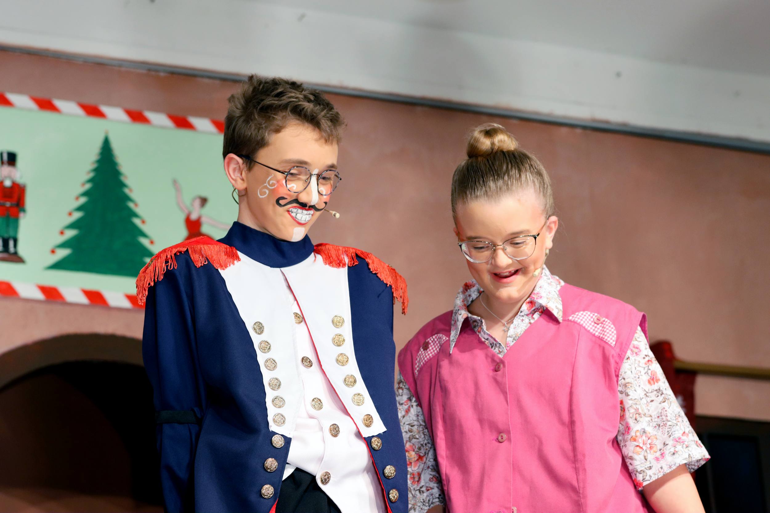 In zwei Akten mit einer Pause konnten die Zuschauer erleben, wie mit Hilfe einer kleinen Maus und eines tanzliebenden Weihnachtsengels (mit äußerst schlagkräftigen Argumenten) das Fest doch noch gerettet werden konnte. Ludwig Grässlich wird bekehrt und wendet sich dem Guten zu: Die Schulden werden erlassen, die arbeitslose Mutter erhält eine Stelle als Hausmeisterin und bringt Haus und Spielzeuge wieder auf Vordermann. Und selbst der böse Schleimteufel wird am Ende mit einer riesigen Schüssel frischen Schleims als Weihnachtsgeschenk – und einem kleinen Lächeln im Gesicht – von der Bühne vertrieben. Gekrönt war das Stück mit schönem Gesang von Marie-Claire und Thomas Bauerfeld.